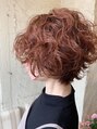 マッシュベースのショートスタイルに、ランダムな動きが出るようなパーマスタイルです!カラーはイルミナカラーのピンク系をオンカラー!スタイリングもハーフドライの状態から、ワックスを揉み込んで自然乾燥するだけの簡単なスタイリングです!