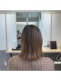 人気の切りっぱなし外はねボブ!重くならないように黄味をおさえつつ柔らかな色でツヤ感もアップ☆
