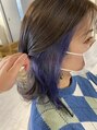 深みを感じさせる青、ネイビーのイヤリングカラー王道の青と違って色素の中に紫も入っているのでブリーチをしていても黄色味が出にくく色落ちの過程もキレイで長く楽しんでもらえる色です☆※ブリーチの回数は元々の髪色、髪の毛の状態によって異なります