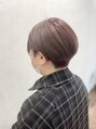 襟足と横を長めに刈り上げてあるハンサムショートになります!耳かけしてアクセントになる様におくれ毛を作る事によりショートだけど女性らしいシルエットを出しています、カラーは春らしい柔らかいピンク系の色で透明感が出るように仕上げています♪