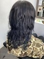 染める前が明るければ明るいほど、キレイにブルーに色が入ります☆ブルー感が控えめが好きな方は、ブリーチをしなくても青みが楽しめます♪カットは流行りのウルフカットです(^^)トップが潰れやすい方や動きをつけたい方におすすめです。