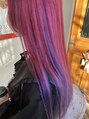海外の音楽が似合っちゃうような、ハイトーンスタイル♪ベースがブリーチしてあるので、根本をブリーチでリタッチ☆アンダーはブルーヴァイオレット、オーバーはフラミンゴピンク☆色味が違う鮮やかなカラーも、パープルの同系色なので絶妙に馴染みます♪