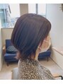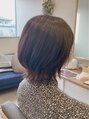 伸ばし中のお客様(^-^)全体整えて、毛量調整して動きあるウルフヘアに♪カラーはショコラブラウンでツヤ感ある上品カラー!!