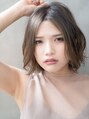 肩より上ラインの柔らかなセンターパートボブ。目線下からのラフなパーマで伸ばしかけの肩にも◎カラーは柔らかなアッシュベージュで艶髪に♪