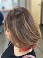 今、人気のエンドカラー。髪の毛の毛先にビビットなカラーを入れることでキュートで目立つ印象に。全体的にバリヤージュで抜いてから毛先にアプリコットピンクを塗布。コントラストがでるのでお洒落になります。