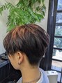 バームで仕上げた韓国風前下がりセンターパートバックは刈り上げて頭の形を綺麗に見せて、清潔感のあるスタイルに