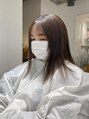 ブリーチなしの透明感ベージュ。オレンジ味を抑えてできるだけ明るめに。バングからサイドバングの流れが大事です!