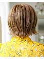 全体が11レベルのオリージュハイライト(ブリーチ)とローライト(7レベルマットブラウン)をスライシングで交互にスパイラル状にいれメリハリや動き、色なじみをよくする酸性パーマでブリーチ毛でも可能