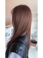 ロングで重くなりやすいスタイルを透明感をたっぷり出して軽やかに見せるトレンドスタイル。ブリーチ一回施術後、ピンクパールとパープル+ベージュで光の当たり具合で角度によって見え方が変わるかわいいスタイル。コテで巻いても動きが出て◎