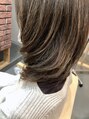 気になる白髪をぼかしつつ、立体感とツヤ感のでるハイライトカラーです。トップは細かいハイライト、内側は太めのハイライトを組み合わせてグラデーションに。おしゃれデザインカラー!