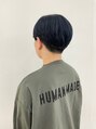 メンズのセンターパートヘアのネイビーカラーヘア♪ブリーチしてるからこそ出る深い色味がかっこいいです!