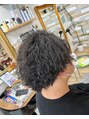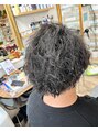 カット、ツイストスパイラルパーマ。マンバン×ハードパーマ。5回ぐらいしっかり捻って、細めロッドにスパイラル巻き。