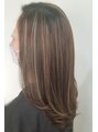 初のハイライトに挑戦しました!ヌード7のベースにブリーチハイライトしてミルクティベージュのカラーをかぶせました(^^)/ステキなママさんになりました♪