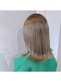 黄色味をできるだけ抑えたベージュカラーです!カットはブリーチ毛でも扱いやすい切りっぱなしのカットにしました!