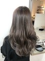 全体にたっぷりとハイライトを入れて、透明感のあるアッシュグレーをのせています。グレージュとハイトーンなベージュが混ざり合っています!