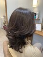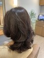 サイドを前上がりにカットして顔まわりを軽く見せています。