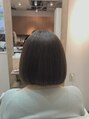 アゴ下ラインのうる艶ボブです♪お手入れの楽さを求めるなら是非お試しください♪カラーはスタイルが重めなので透け感重視のオリーブグレージュで♪