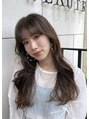 顔周りのレイヤーカットで動きを出した柔らかいロングヘア。乾かしただけでラフな質感になるように、スライドカットで毛先の動きを。