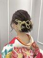 和装に合わせたアップスタイルです!リボン、水引き、紐をバランスみて飾り付けさせていただきました!!