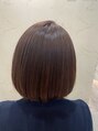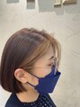 顔まわりの気になる白髪をシークレットハイライトでぼかして明るめのファッションカラーでオンカラーすると、白髪のストレスが軽減されます。