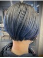 - 資生堂カラーミューズ/ケアブリーチ/ネイビーブルー/インナーカラー/前下がりボブ/ショート/丸みカット