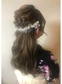 袴にトップ・サイド編み込みの大きなカールのハーフアップにヘアアレンジしました☆