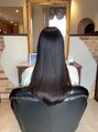 ナチュラルストレートは毛先のワンカールがあるだけで柔らかい印象になります!透明感があるアッシュ系のカラーで、ダウンスタイルでも軽い印象に!