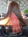 インナーカラースタイル。髪色に厳しい職場でも、髪を縛ると見えないスタイル。インナーはブリーチ1回でカラーリングしました。