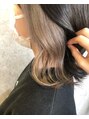 初カラーでインナー部分は1回ブリーチしてハイトーンのほんのりグレーを入れたベージュに☆!!表面は染めずに地毛をいかしたスタイル!