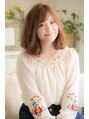 ワンレングスベースのミディアム。顔周りのリバースでカジュアル+フェミニンヘアに♪♪