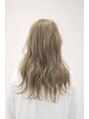 ファイバープレックスブリーチとイルミナカラーによるダブルカラー。ヘアカラー前に髪質改善トリートメントの酸熱トリートメントを施術し、もともとハイダメージですが、美しいハイトーンカラーを実現しています。