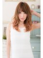 イエローベージュからのピンクベージュ。しっかりトリートメントでつやとうるおいを出すのを忘れず!バングにも隙間を入れ、全体に柔らかくふわふわに♪