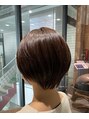 丸みを意識した女性らしいショートスタイルです!落ち着いたアッシュ系のカラーで、ツヤ感のある大人スタイルにできます!
