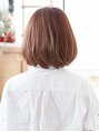 段差をあまり付けていないチョイ重ボブスタイル。少し明るめカラーのチョイスが◎!動きのつけずらい方はパーマをかけると◎!ナチュラルボブ.アッシュ・マットアッシュ・スモーキーアッシュ・くせ毛パーマ ,ワンカール、ナチュラルカール、エアリーカール
