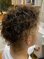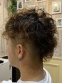 通常のブロックに見えますが0,8ミリから3ミリへのフェードになります。トップはセイムレイヤーでカットしてパーマは11ミリ12ミリのスパイラルパーマ+クリープをしてあります。フェードで分けるスタイルよりクリエイティブかつ革新的で好きです。