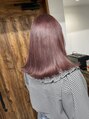 店内照明。編集加工無し。1ブリーチ。ピンクベージュ。春にイチオシのカラー。1ブリーチでダメージレスに仕上がるのもピンクカラーのおすすめポイント!