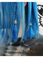 鮮やかなライトブルー☆ブリーチ2回推奨!ベースを整えて染めると色落ちも淡い水色で綺麗になります♪1色だと物足りない方には1本からオーダー可能なポイントブレイズやティンセル(きらきらエクステ)がオススメです♪
