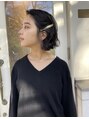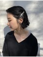 全体にゆるめのウェーブパーマをかけたボブスタイルのアレンジヘア。全体にボリュームの出るスタイルですが、サイドをタイトに留める事でメリハリのあるスタイルに。黒髪でも重たく見えず可愛いです!