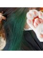 さりげないインナーカラーです!濃いめのグリーンにしみました★おろしてる時はわからないのですが、分けたり、しばったりすると出てくるインナーカラーです!