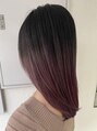 長さをナチュラルセミディでカット。カラーは一度ブリーチしてピンクヴァイオレットを。