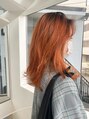 根元はずしの1ブリーチグラデーションで作る、オレンジカラー*肌馴染みの良いようにベージュを足してまろやかに仕上げてます。ケアブリーチ使用で、ダメージもなるべく抑えてます。