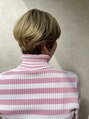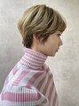 ハイトーンで耳も出したスッキリショートスタイルです。少しハンサムにボリュームの位置が高めにしてあります。ハイトーンのカーキは落ち着きもあり個性もありのオシャレカラーです。スタイリスト高橋