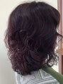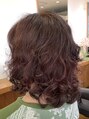 パーマをかけてから一ヵ月なので、少しレイヤーを入れなおしてウェーブを出します。毛量調節をして、毛先の軽さを出します。明るくなりやすいとのこと、若干希望より暗めに色味を選択します。仕上がりはオレンジベースの落ち着いた色に仕上がりました。