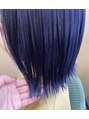 ケアブリーチ後、コバルトブルーとラピスラズリのミックスをオンカラー。