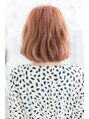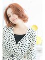センターパートオレンジカラー☆くせ毛風カールウルフボブa1
