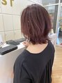 ピンクレッド ケアブリーチ 外ハネボブ ルーツカラー 透明感