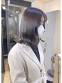 透明感たっぷりのアッシュブラウン。ブリーチなしで可能です!カットは肩につくぐらいで顔まわりに少しレイヤーを入れています。