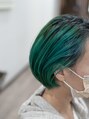 根元は暗く残したターコイズカラー☆個性的なスタイルも是非♪