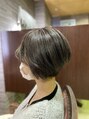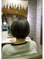 白髪ぼかしハイライトのショートボブスタイルです。白髪もデザインに活かして馴染ませるカラーです。ショートボブでタイトルスタイルも、女性らしくしています。