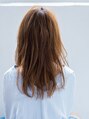 幼く見えがちな眉上前髪も、全体的に頑張り過ぎないラフなウェーブで大人の女性らしさを演出。 外国人風の透明感のあるアッシュ系のカラーで一気にトレンドヘアに!!巻いたとき重たくならない様に、少しだけ量を軽くしてスッキリさせました。